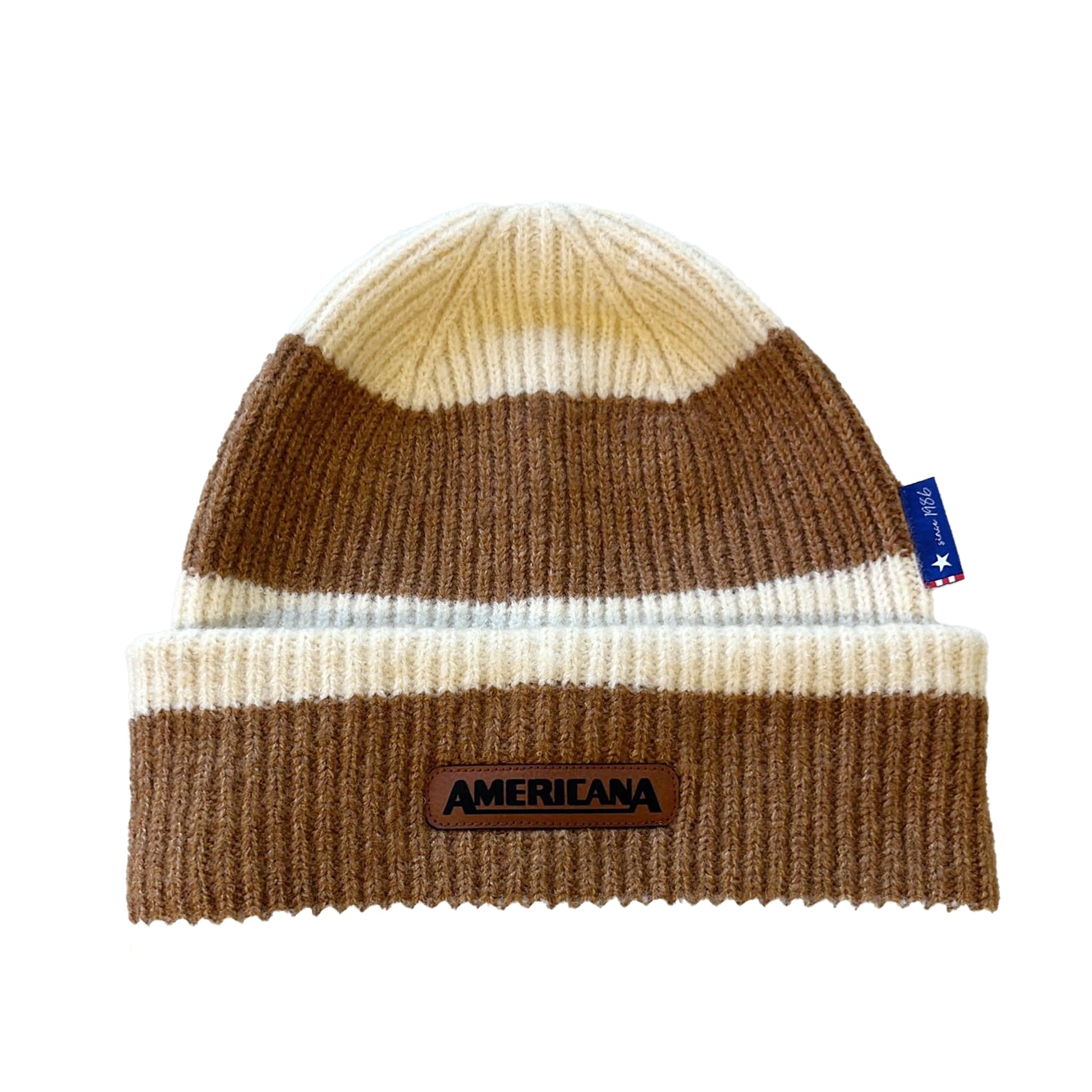 Unsere gestreifte Americana Beanie überzeugt mit einem markanten Blockstreifen-Look und besteht zu mindestens 50 % aus recyceltem Polyester. Das Garn ist besonders weich und sorgt mit seinem einlagigen Strick für ein angenehmes Tragegefühl.