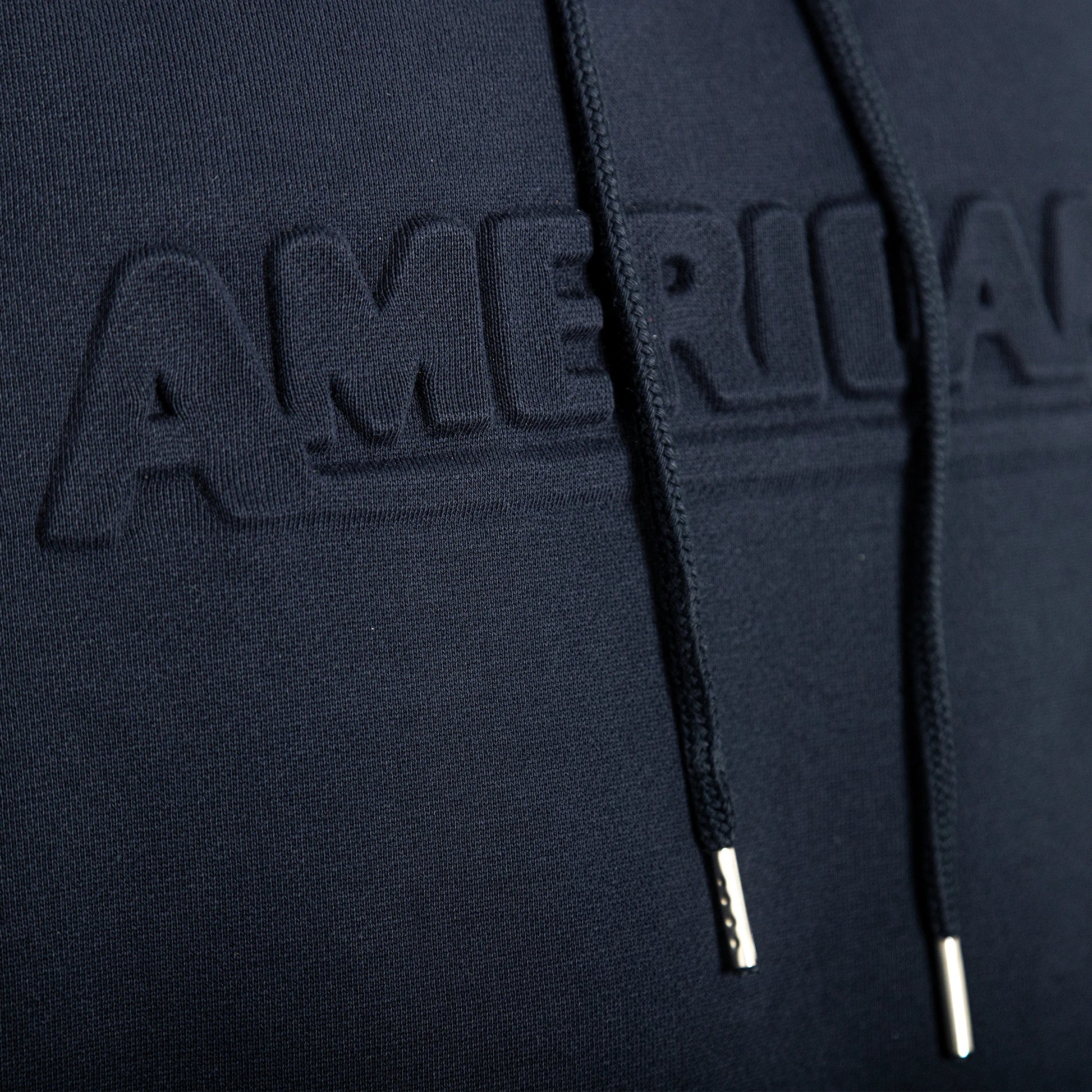 Das Americana Logo wird durch das sogenannte "Embossing" auf einen hochwertigen Hoodie aus ringgesponnener, GOTS zertifizierter Baumwolle geprägt. Unser Partner achtet zudem darauf, dass die Produktion den Richtlinien der Fair Wear Foundation entspricht und unter fairen Bedingungen hergestellt wird.
